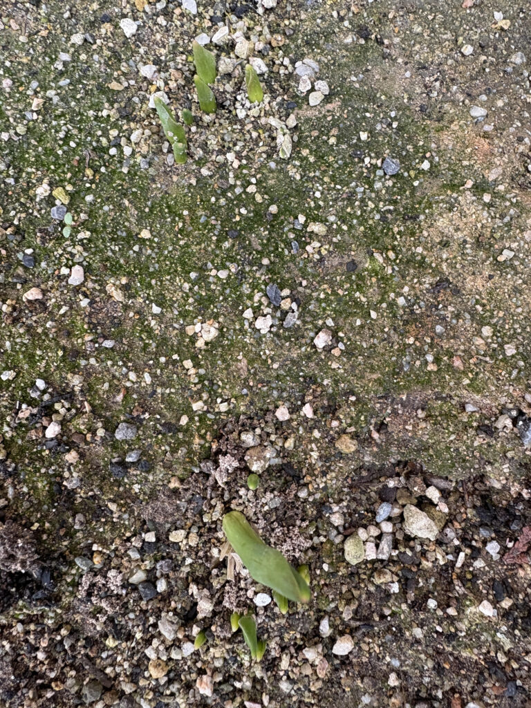 ど根性チューリップの芽がでたよ 2026 2/03 季節の写真 今年も玄関に向かって右側のかた~い土からど根性チューリップの芽がでたよ!(^^)! 季節の写真 <豆まき注意報> 関連記事 妹がつくったクリスマスタペストリー 2025-12-09 メダカの赤ちゃん生まれたよ 2025-06-10 医院玄関の花壇 2025-05-19 母の日の薔薇 2025-05-11 ど根性チューリップの花が咲いたよ 2025-04-11 ど根性チューリップのつぼみ 2025-04-07 ど根性チューリップの葉っぱ 2025-03-27 母のつくった編みぐるみの写真 2025-02-17